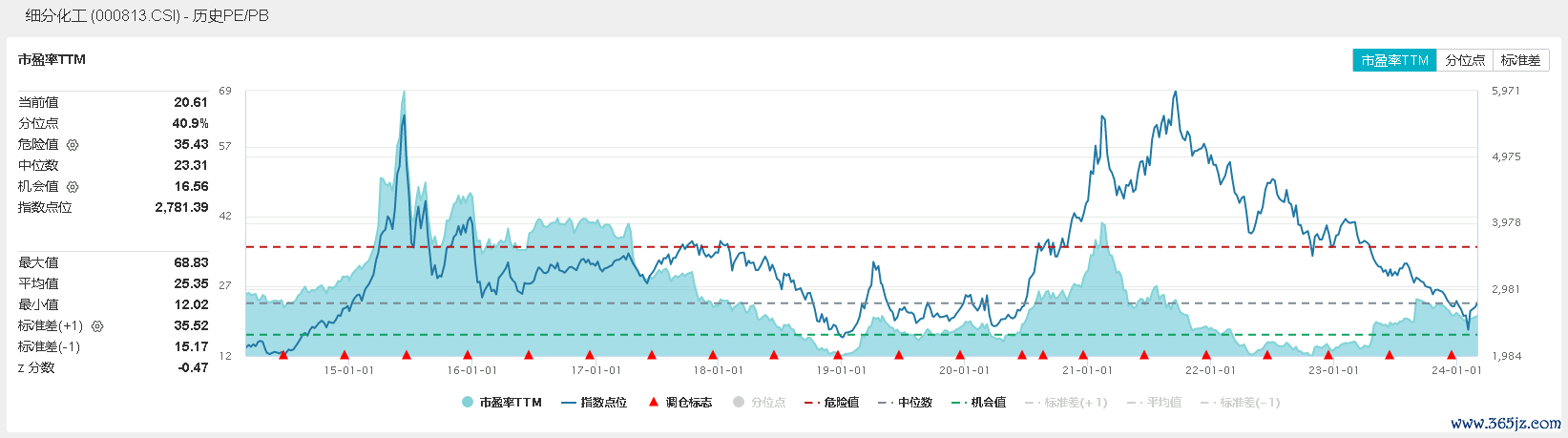 从估值层面来看,板块当前估值水平具有一定吸引力。Wind数据显示,截至昨日收盘,细分化工指数市盈率为20.61倍,位于近10年40.9%分位点的相对低位,中长期配置性价比较为突出。